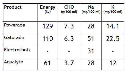 Some readily available sports drinks in Australia are listed below with additional information on their nutritional values to assist the planning process.